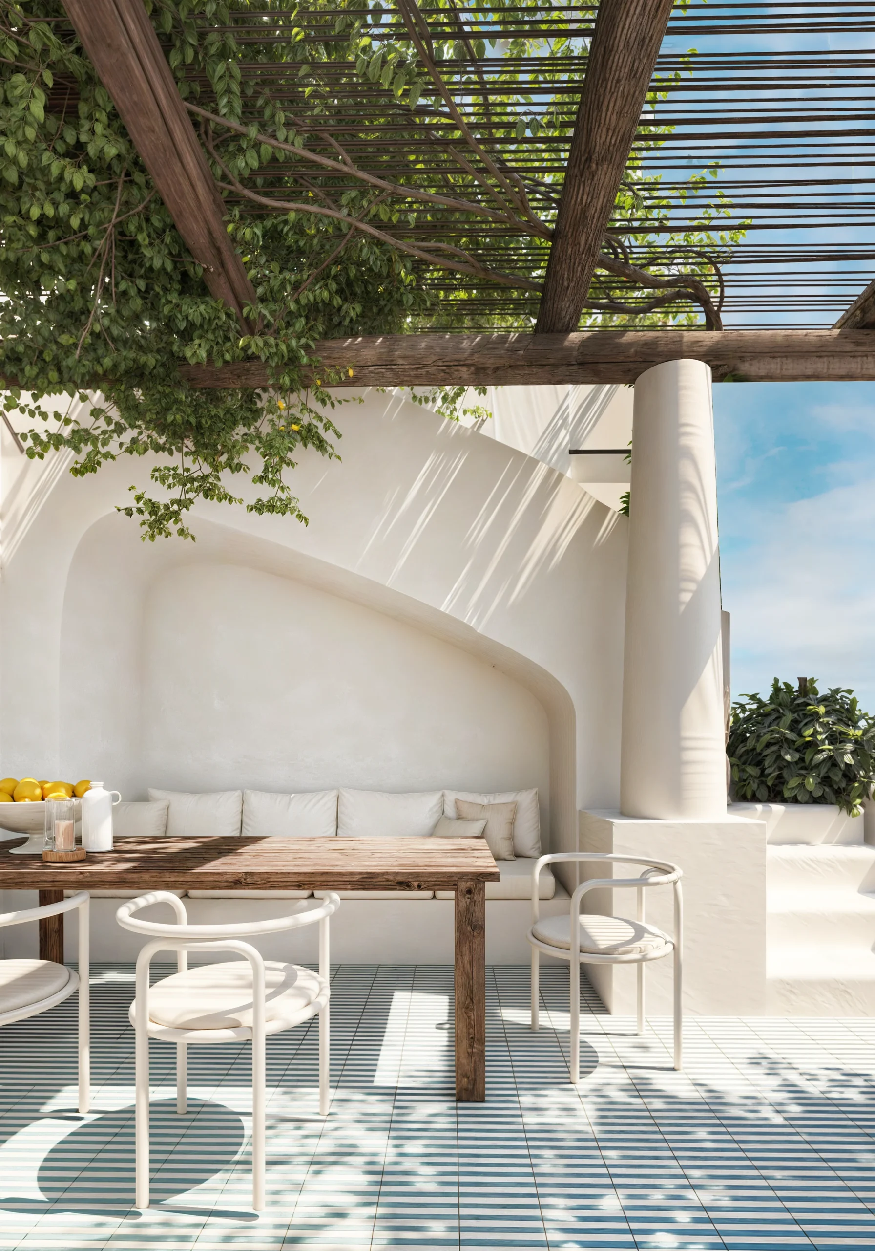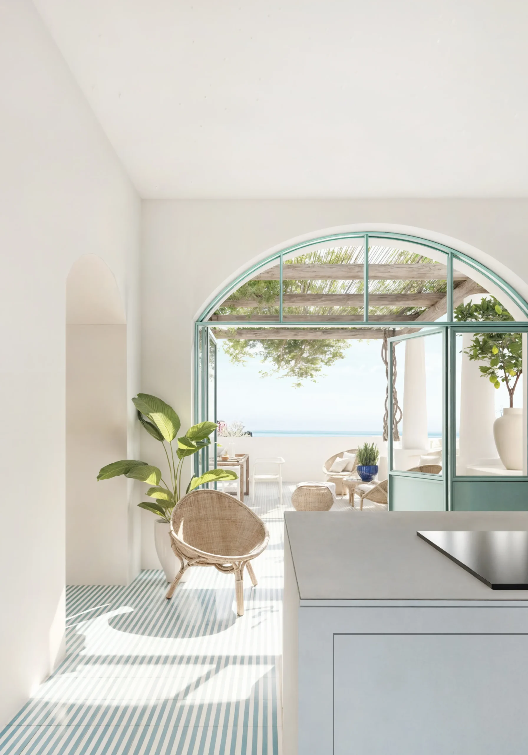 Gli interni riflettono l’anima più autentica dell’isola: essenziale, luminosa, profondamente mediterranea. Linee pulite, materiali naturali e ambienti che respirano, in dialogo costante con la luce e la quiete intorno.