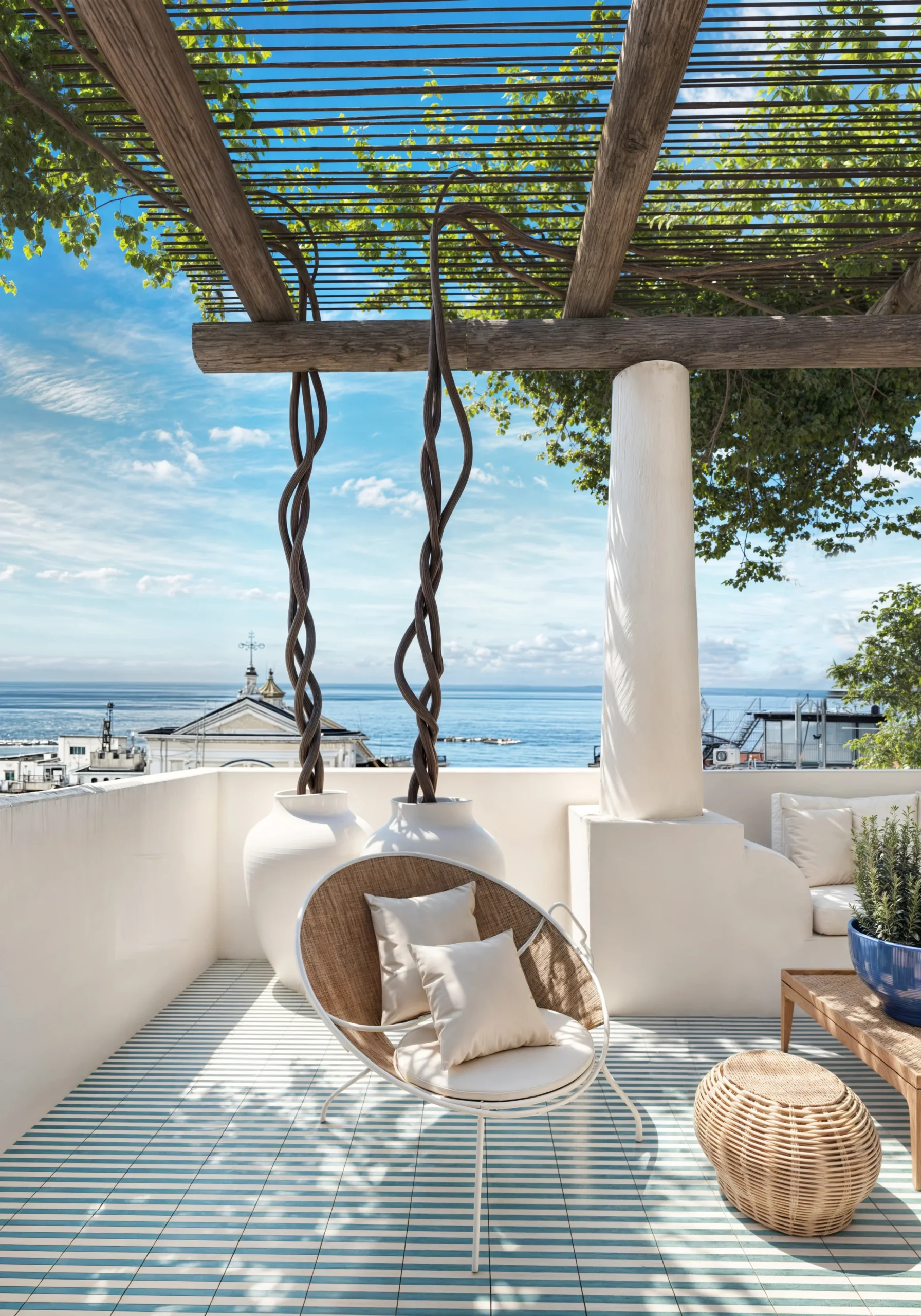 Dall’alto, ogni cosa cambia ritmo. Gli attici di Vita Lena sono spazi ariosi, luminosi, sospesi tra cielo e mare.
